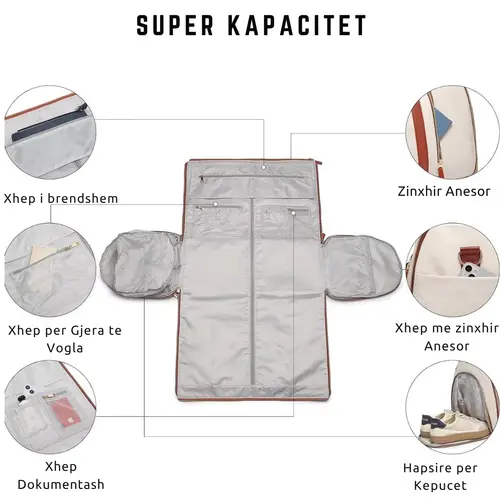 | Lloji | Çantë udhëtimi 2-në-1 / Çantë e varur rrobash |