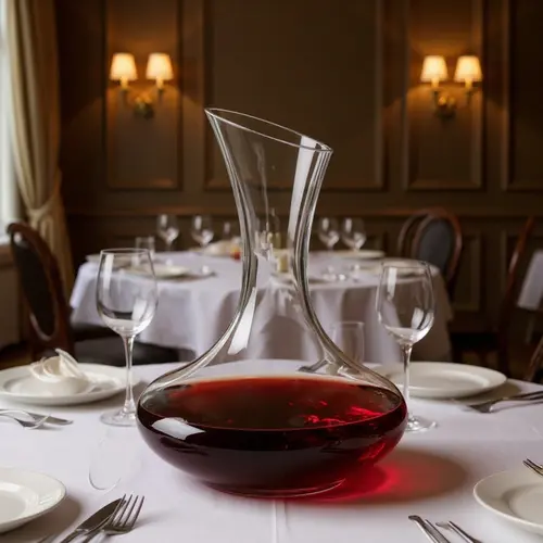 Dekanter elegant prej qelqi kristal për oksigjenimin dhe shërbimin e verës suaj të preferuar. Një zgjedhje perfekte për adhuruesit e verës.