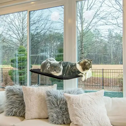 Ky hamak i ajrosur për mace vendoset në dritare duke i dhënë kafshës suaj një hapësirë të rehatshme për të pushuar,