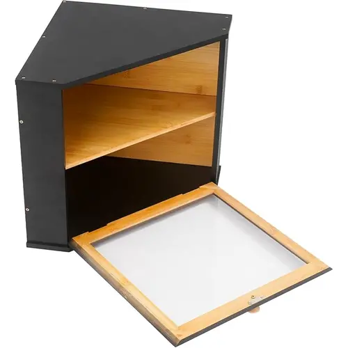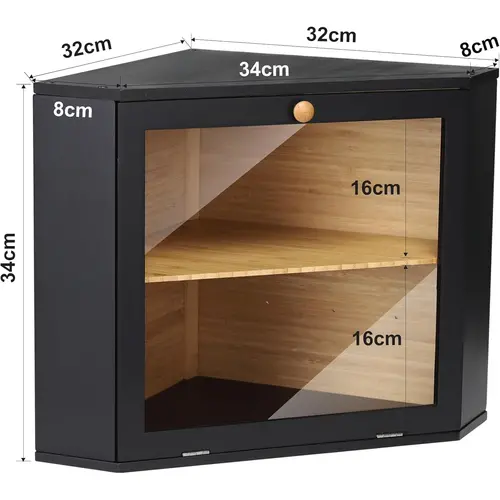 Enë trekëndëshe druri me derë akrilike transparente, e dizajnuar për ruajtje të bukës, djathit dhe ushqimeve të lehta. Përshtatet në qoshet e banakut për kursim hapësire dhe estetikë kuzhine.