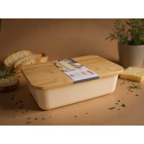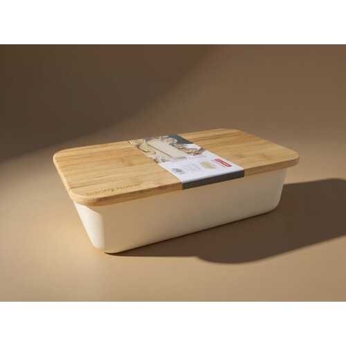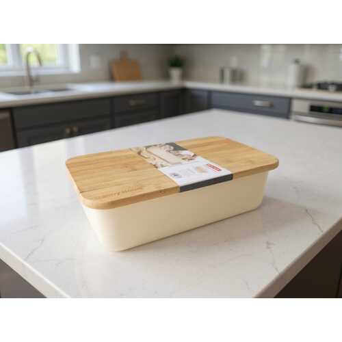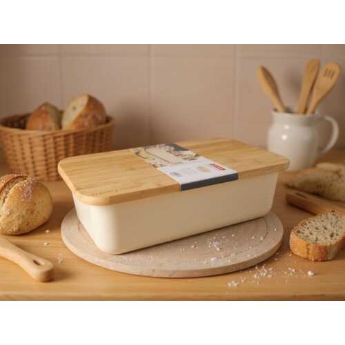 Kjo kuti moderne për bukë është një zgjidhje elegante dhe funksionale për çdo kuzhinë. Me dizajn minimalist, ngjyra neutrale dhe përfundim mat, ajo përshtatet në mënyrë të përkryer me çdo ambient. Kombinimi i trupit plastik cilësor me kapakun prej bambuje ofron pamje estetike dhe përdorim praktik çdo ditë.