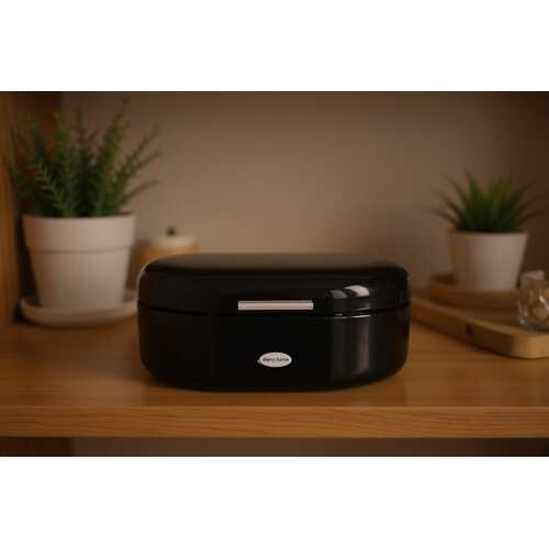E bërë nga metal cilësor me veshje zinku dhe kapak të qëndrueshëm, ajo mban bukën dhe produktet e pjekura të freskëta për më gjatë, duke qenë një element i domosdoshëm për çdo kuzhinë bashkëkohore.