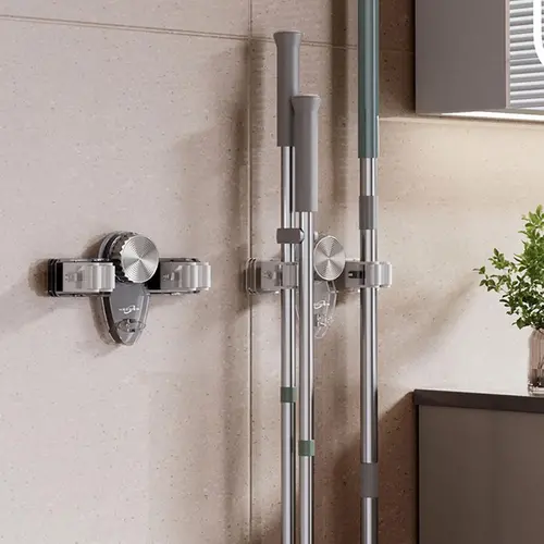 Mbajtësja e mopit ju ndihmon të kurseni hapësirë, të shmangni rrëmujën dhe të mbani aksesorët tuaj të pastrimit gjithmonë në vendin e duhur. Është e shkëlqyer për një rutinë pastrimi më të organizuar dhe efikase.