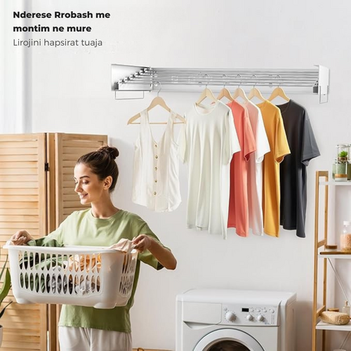 Ndersja e rrobave murale është një zgjidhje praktike dhe funksionale për çdo shtëpi. I përshtatshëm për përdorim si brenda ashtu edhe jashtë, ai ofron komoditet, kursim hapësire dhe qëndrueshmëri të lartë për tharjen e rrobave tuaja.