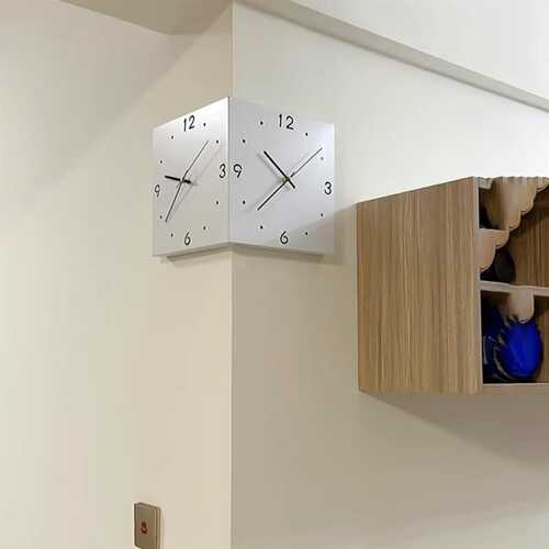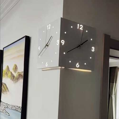 Elegancë dhe funksionalitet në një orë! Kjo orë muri me kënd me dy anë sjell një stil luksoz dhe praktik në çdo ambient. Me dizajn katror, numra të qartë dhe lëvizje precize të gjilpërës, është ideale për shtylla, korridore apo qoshe të dhomave – duke u bërë një aksesor unik dekorativ dhe funksional.