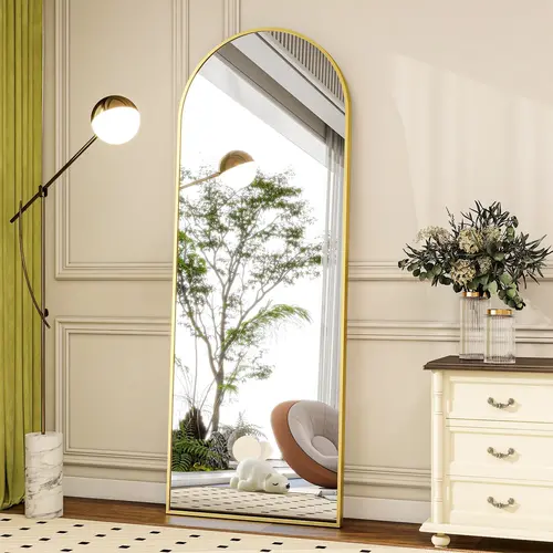Kjo pasqyrë me hark ari dhe gjatësi të plotë është kombinimi perfekt i dizajnit modern dhe ndërtimit të qëndrueshëm. Me pasqyrë rezistente ndaj shpërthimit dhe kornizë alumini të artë, ofron pamje të qartë, stil të sofistikuar dhe siguri maksimale në përdorim.