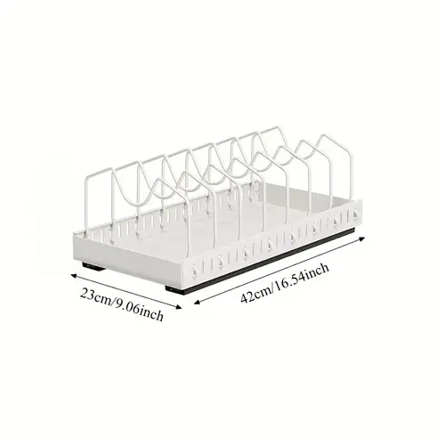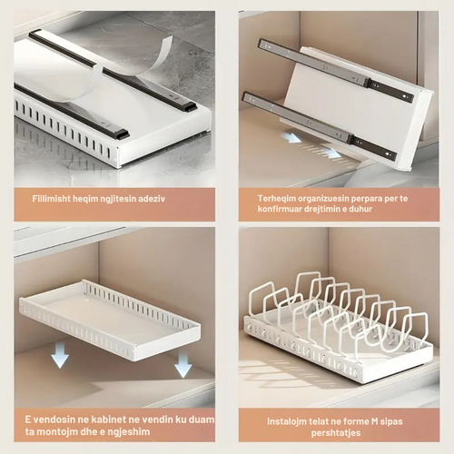 Rafti organizues për tenxhere dhe tiganë është zgjidhja ideale për të mbajtur kuzhinën të rregullt dhe të organizuar. Me dizajn rrëshqitës, ndarës të rregullueshëm dhe kapacitet të lartë, ky organizator shfrytëzon maksimalisht hapësirën në dollap apo banak, duke ju ofruar qasje të shpejtë dhe efikase në enët e gatimit dhe pjekjes.