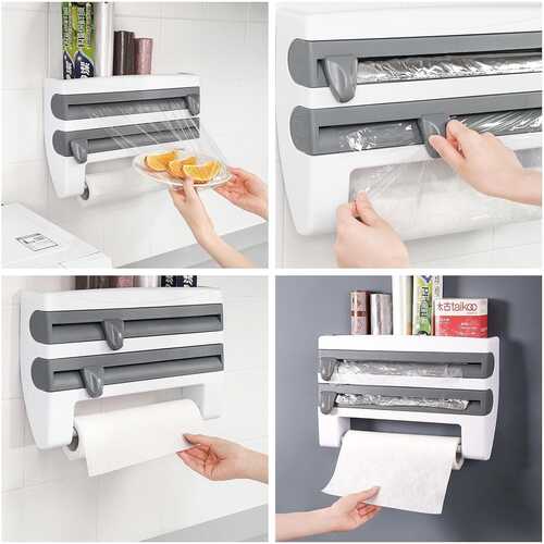 Organizoni kuzhinën tuaj në mënyrë efikase me këtë raft të shumëfunksional për mbajtjen e letrave të aluminit, qeseve të gatimit dhe letrave të kuzhinës. Dizajni i tij modern dhe praktik ofron një zgjidhje ideale për kursimin e hapësirës.