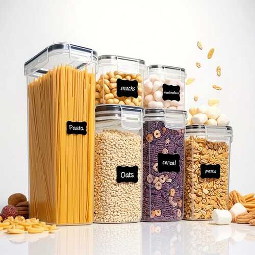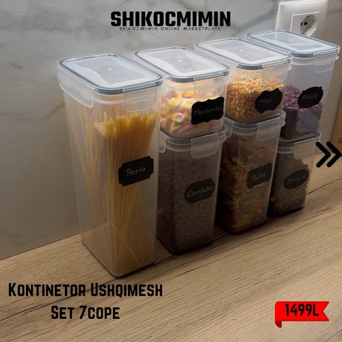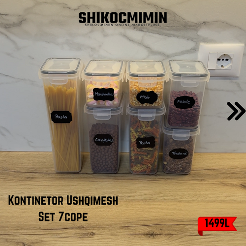 Set kontejnerësh organizues për drithëra me 7 copë është zgjidhja perfekte për të mbajtur kuzhinën tuaj të organizuar dhe të rregullt. Me një dizajn të papërshkueshëm dhe hermetik, këto enë ushqimore janë të përshtatshme për ruajtjen e drithërave, makaronave, orizit, miellit, sheqerit, kafesë, çajit, arrave dhe ushqimeve të tjera të thata. Materiali pa BPA siguron që ushqimi juaj të mbetet i freskët dhe i sigurt për një kohë të gjatë.