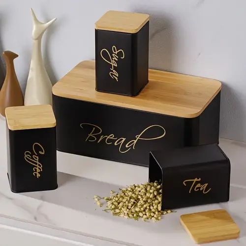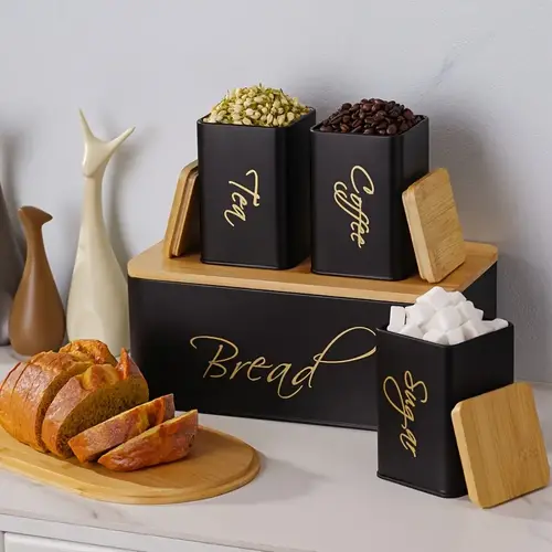 Me setin e mbajtëses së bukës dhe kanaçeve për çaj, kafe dhe sheqer, kuzhina juaj fiton jo vetëm rend dhe pastërti, por edhe një pamje elegante e tërheqëse. Materialet cilësore dhe dizajni i qëndrueshëm e bëjnë këtë set ideal për përdorim të përditshëm, duke ruajtur ushqimet e freskëta dhe aromatike për më gjatë.