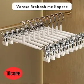 Varëse Rrobash me Kapëse Varësja e pantallonave me kapëse metalike është një zgjidhje e fortë dhe funksionale për ruajtjen e rrobave. E bërë prej metali cilësor, rezistente ndaj ndryshkut dhe thyerjes, ajo ofron mbështetje të sigurt për pantallona, funde apo rroba të...