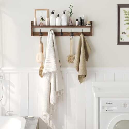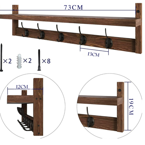 Zgjidhje praktike dhe elegante për organizimin e shtëpisë! Ky raft i montuar në mur kombinon funksionalitetin 2-në-1 me dizajn modern prej druri, duke ofruar hapësirë për ruajtje dhe grepa të fortë për varjen e sendeve tuaja. I përshtatshëm për çdo ambient – dhomë gjumi, banjo, kuzhinë apo hyrje.