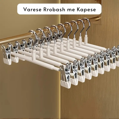 Këto varëse ofrojnë stabilitet dhe kursim hapësire në gardërobën tuaj. Rrobat ruhen në mënyrë të rregullt, pa rrudha dhe pa zënë shumë vend, duke bërë organizimin tuaj më të thjeshtë dhe më estetik.